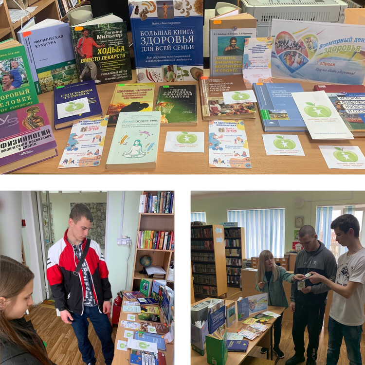 Накануне этого события, 6 апреля, в центральной районной библиотеке прошла акция «Будь здоров!». Посетителям была предложена книжная выставка, где все желающие ознакомились с рецептами здоровья, как его сохранить, вспомнили пословицы, узнали о здоровом питании, послушали о вредных привычках, которые влияют на наше здоровье, а так же приняли участие в спортивных викторинах. Библиотекари пожелали всем посетителям быть всегда в хорошем настроении, ведь радостное настроение помогает здоровью.