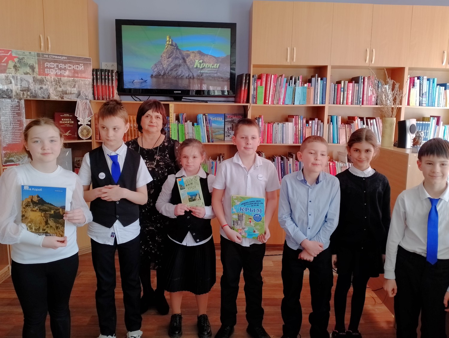 В рамках Дня сотрудники Центральной детской библиотеки провели для учащихся 6-х классов СОШ №1 поэтическую зарисовку «Частичка России – прекрасный наш Крым». Каждая страничка которой, была посвящена знаковым местам Крыма, историческим событиям и значимым личностям.
