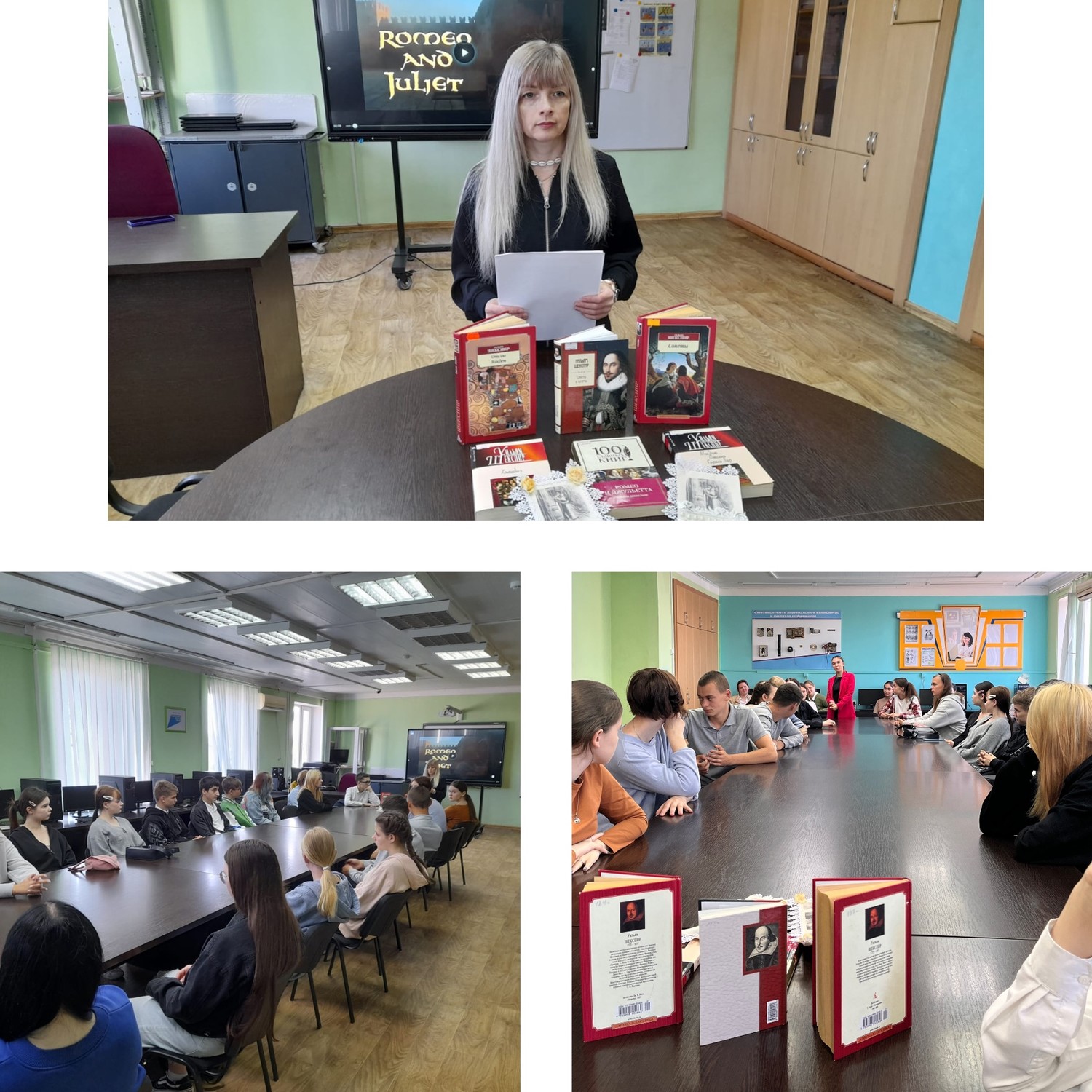 22 апреля в рамках молодежного клуба «Литературный Блок», состоялся час поэзии, посвященный 460-летию со дня рождения У. Шекспира. Руководитель клуба познакомила студентов ГБПОУ КК ТТКР с биографией и творчеством поэта, была представлена книжная выставка, где были собраны самые известные произведения. Так же состоялся просмотр отрывка сцены из фильма «Ромео и Джульетта».