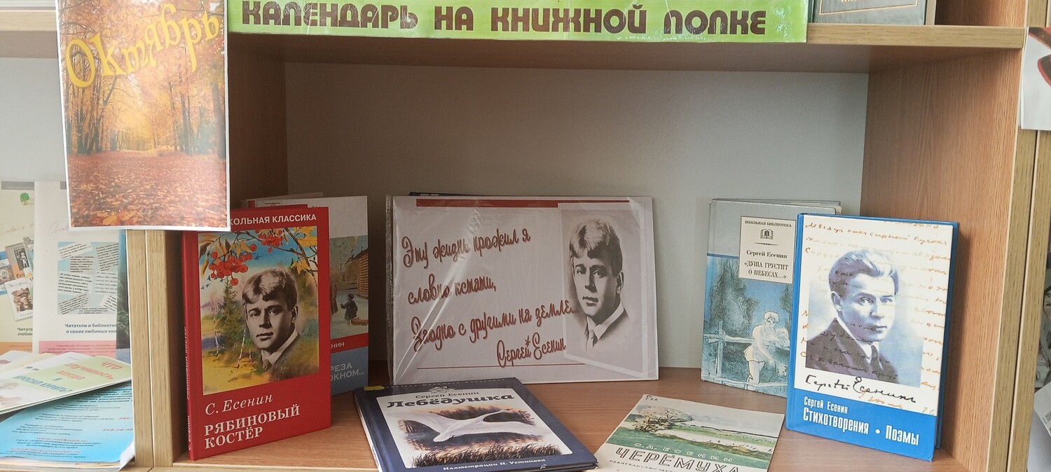 На старшем абонементе библиотеки организована тематическая книжная выставка, представляющая собой тщательно подобранные издания, охватывающие различные аспекты жизни и творчества Сергея Есенина.