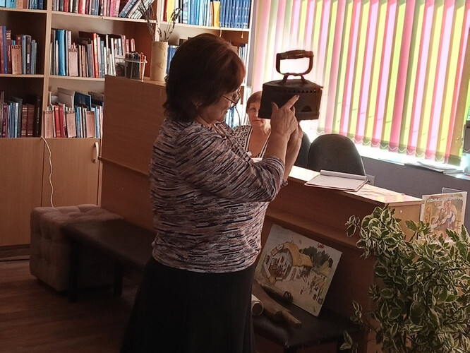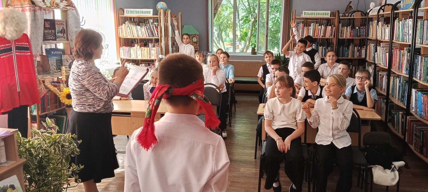Из рассказа библиотекаря учащиеся 4 «В» СОШ №1 узнали о вековых традициях, обычаях и ценностях кубанских семей. Ребята с интересом рассматривали старинные предметы быта: расшитые рушники, домотканые половики, глиняную посуду, чугунные утюги; угадывали, для чего служил рубель. Поговорили на балачке и поиграли в веселую игру кубанских детворы - «Сон казака».
