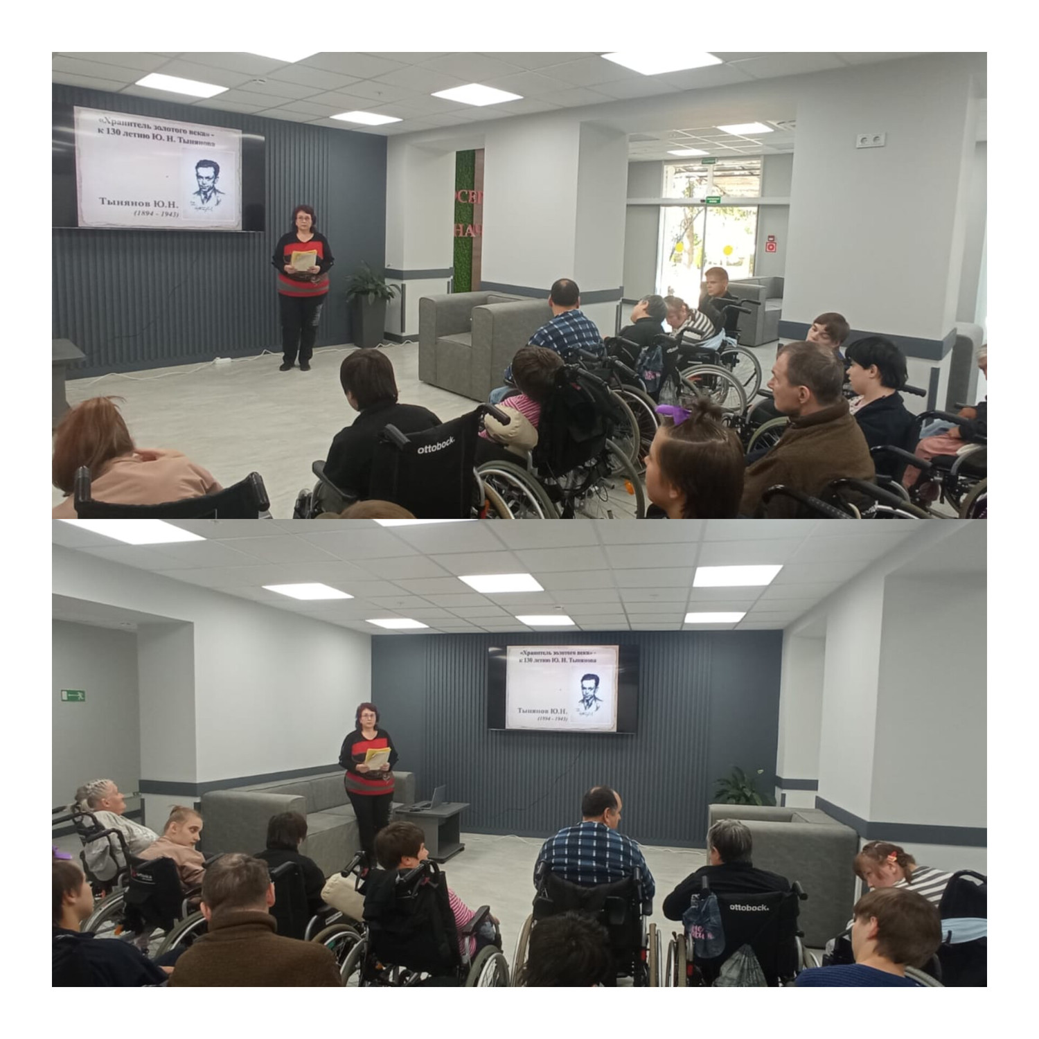 15 октября в рамках проекта «Общение без границ», специалисты центральной районной библиотеки посетили дом милосердие и провели литературный час к 130-летию Ю.Н. Тынянова «Хранитель золотого века». Юрий Николаевич Тынянов - русский советский прозаик, поэт, драматург, выдающийся ученый, литературный критик. Принадлежал к плеяде первых советских исторических писателей. Он прожил недолго и написал немного. Чтобы пересчитать его художественные произведения, хватит пальцев одной руки: «Ксюхля», «Смерть Вазир-Мухтара», «Подпорудчик Киже» и другие.