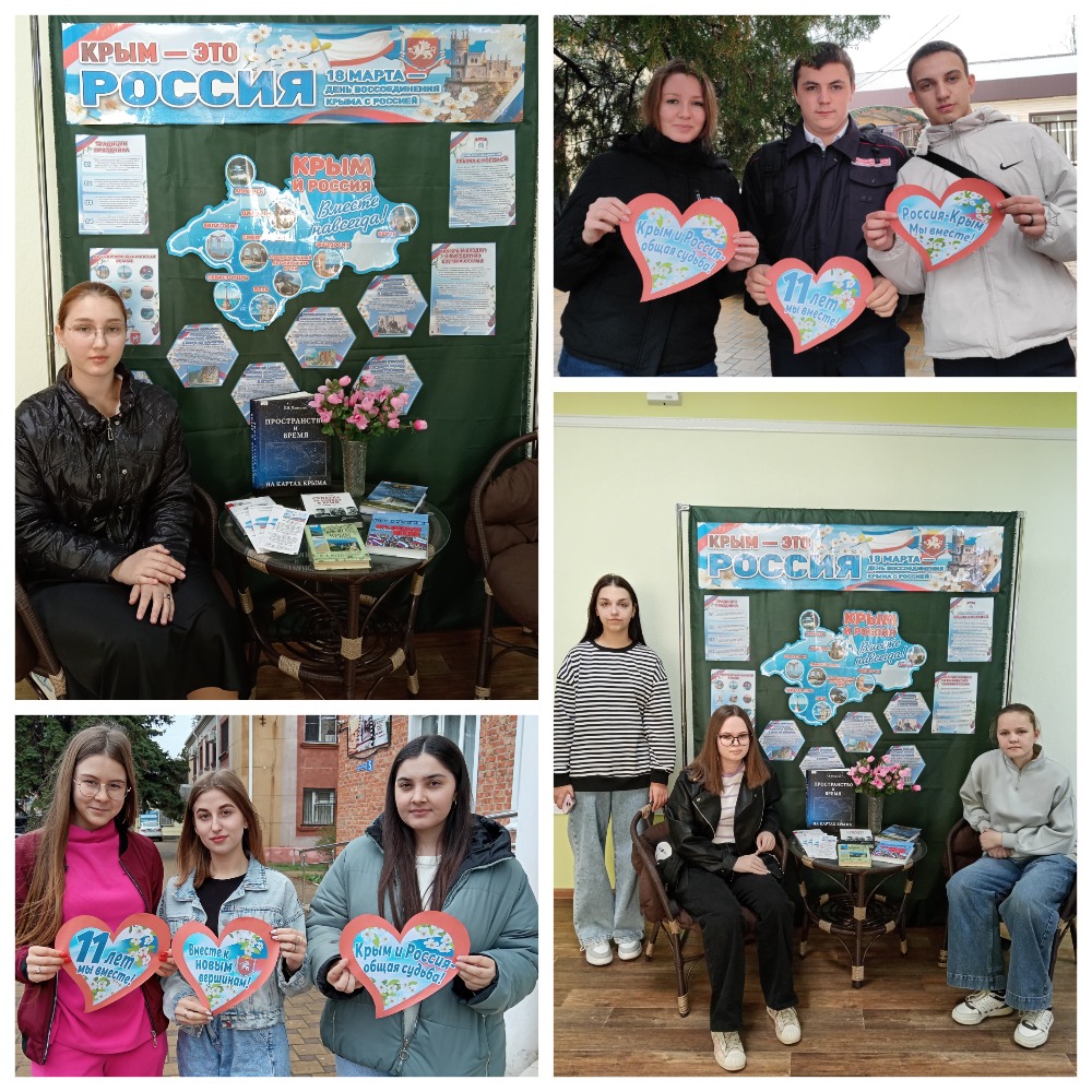 18 марта Тимашевская центральная библиотека организовала книжную выставку-инсталляцию, приуроченную к столь знаменательному дню. Были представлены книги, вдохновленные историей Крыма, красотой его природы и достопримечательностями. Также на улицах нашего города была проведена информационная акция. Сотрудники библиотеки привлекали к мероприятию молодежь, рассказывая им о важности данного события и о его влиянии на нашу страну.