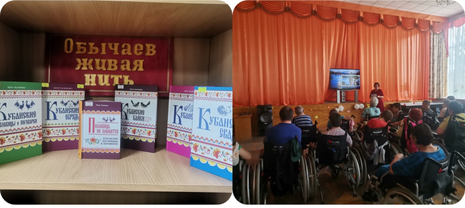К Единому Дню фольклора, 10 июля, работники центральной районной библиотеки посетили Тимашевский дом милосердия и провели игровую программу «Культурное наследие Кубани». Национальная культура Кубани очень самобытна и разнообразна. Наш народ чтит и передает традиции из поколения в поколение, от дедов к внукам. Присутствующие с большим удовольствием вспомнили наши праздники и традиции, пели частушки, отгадывали загадки и соревновались в скороговорках. Библиотекарь рассказала присутствующим о малых формах русского фольклора: пословицах и поговорках, потешках, загадках, легендах и сказках. Окунуться в мир культуры Кубани слушателем помогло виртуальное путешествие «Кубанские традиции и обряды».