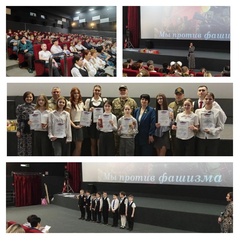 18 марта в кинотеатре «Заря» прошло торжественное награждение победителей муниципального конкурса творческих работ «Мы против фашизма», посвященный подвигу участников СВО. Дата была выбрана не случайно. Именно в этот день в 2014 году Крым воссоединился с Россией. И для всей страны этот день стал началом новой жизни. Началась война на Донбассе и сотни добровольцев уехали туда, чтобы помочь ополченцам. В 2022 году началась специальная военная операция, история которой пишется сегодня. У спецоперации есть свидетели - её участники. Истории жизни уроженцев района – достоверное и объективное свидетельство реальных участников специальной военной операции. И встречи с ними, их рассказы – самое ценное для ребят. Рассказы бойцов стали сюжетам для рисунков и проектов. По ним были сняты репортажи. Особый интерес вызвал репортаж Дарьи Пархоменко, в котором она рассказал о своем дяде А.А. Пархоменко, настоящем русском офицере, ставшем прототипом героя фильма «Гранит».