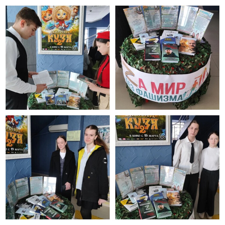 Для более полного погружения в тему СВО сотрудниками библиотеки была организована книжная выставка «За мир без фашизма». На выставке были представлены книги, рассказывающие об истории Новороссии и о причинах войны на Донбассе. Особый интерес вызвала литература о героях ополчения и спецоперации.
