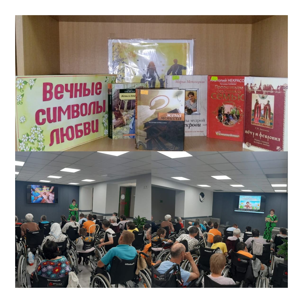 В преддверии праздника «День семьи, любви и верности» 7 июля специалисты Центральной районной библиотеки посетил «Тимашевский дом милосердия», и провели в рамках проекта «В гармонии с возрастом и снова Ретро в моде» литературный час «Мы вместе дружная семья». Специалист познакомила слушателей с историей праздника, поговорили о семейных ценностях и традициях. Жители активно приняли участие в интеллектуальных конкурсах: «Самое главное в семье», «Продолжи пословицу о семье». Так же оформлена выставка «Живет в веках любовь и верность», на которой были представлены книги о семейном воспитании и художественная литература о семье разных авторов.