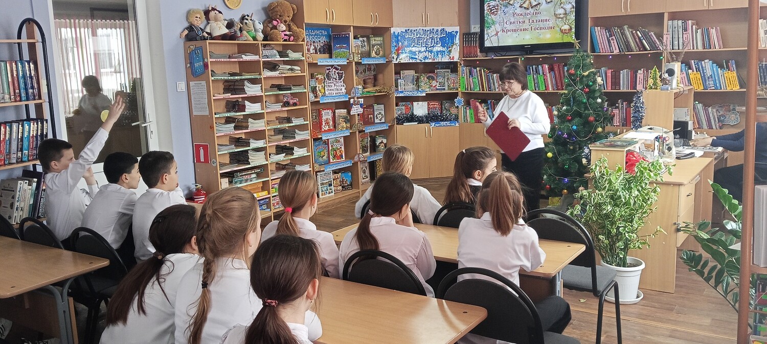 В Центральной детской библиотеке прошёл увлекательный час фольклора, посвящённый традициям празднования Святок. Участниками мероприятия стали ученики 4-го класса.