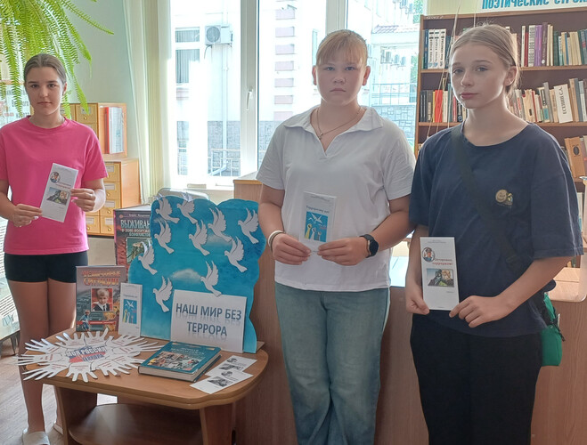 Районная детская библиотека присоединилась к акции «Наш мир без террора». Ведь каждый из нас играет важную роль в обеспечении безопасности нашей страны.