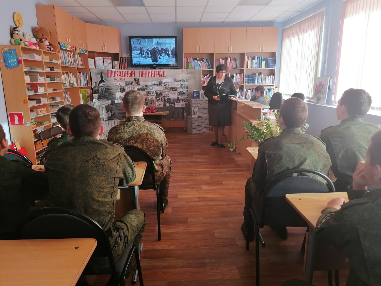 С участниками патриотического клуба «Мое Отечество» говорили о мужестве и самоотверженности ленинградцев. Беседа сопровождалась показом видеохроники, чтением стихов О. Бергольц, прослушиванием отрывка «Седьмой симфонии» Дмитрия Шостоковича.