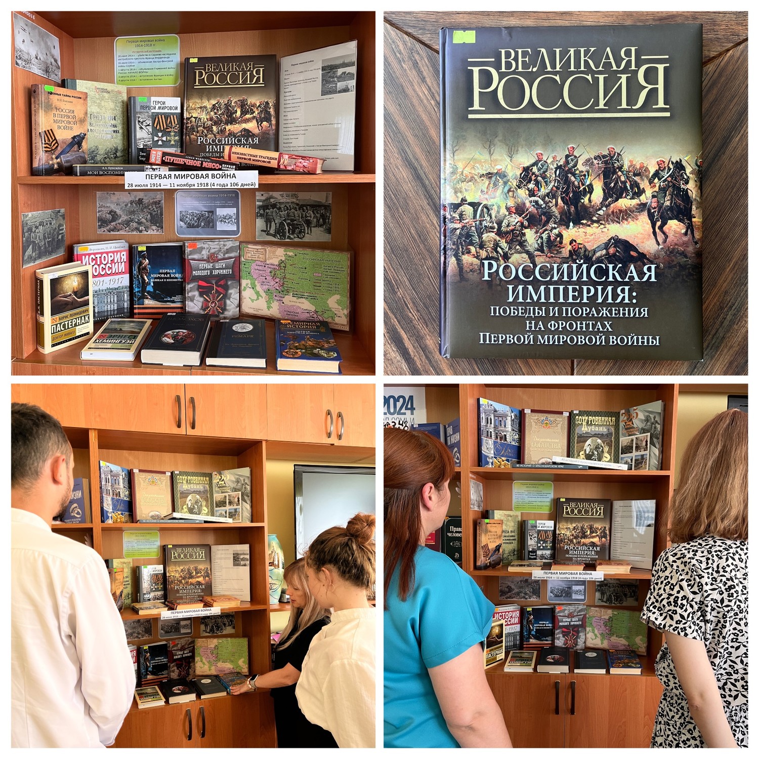 В день памяти в Центральной районной библиотеке была оформлена книжная выставка «Первая мировая» призывающая прикоснуться к героическим и трагическим страницам нашей истории, где были представлены историко-документальные издания, мемуары и художественные произведения, посвящённые событиям тех далёких лет. Книги рассказывают о причинах возникновения войны, о ходе боевых действий, об участии России в войне, героизме русских солдат и офицеров, о последствиях для нашей страны и мира.