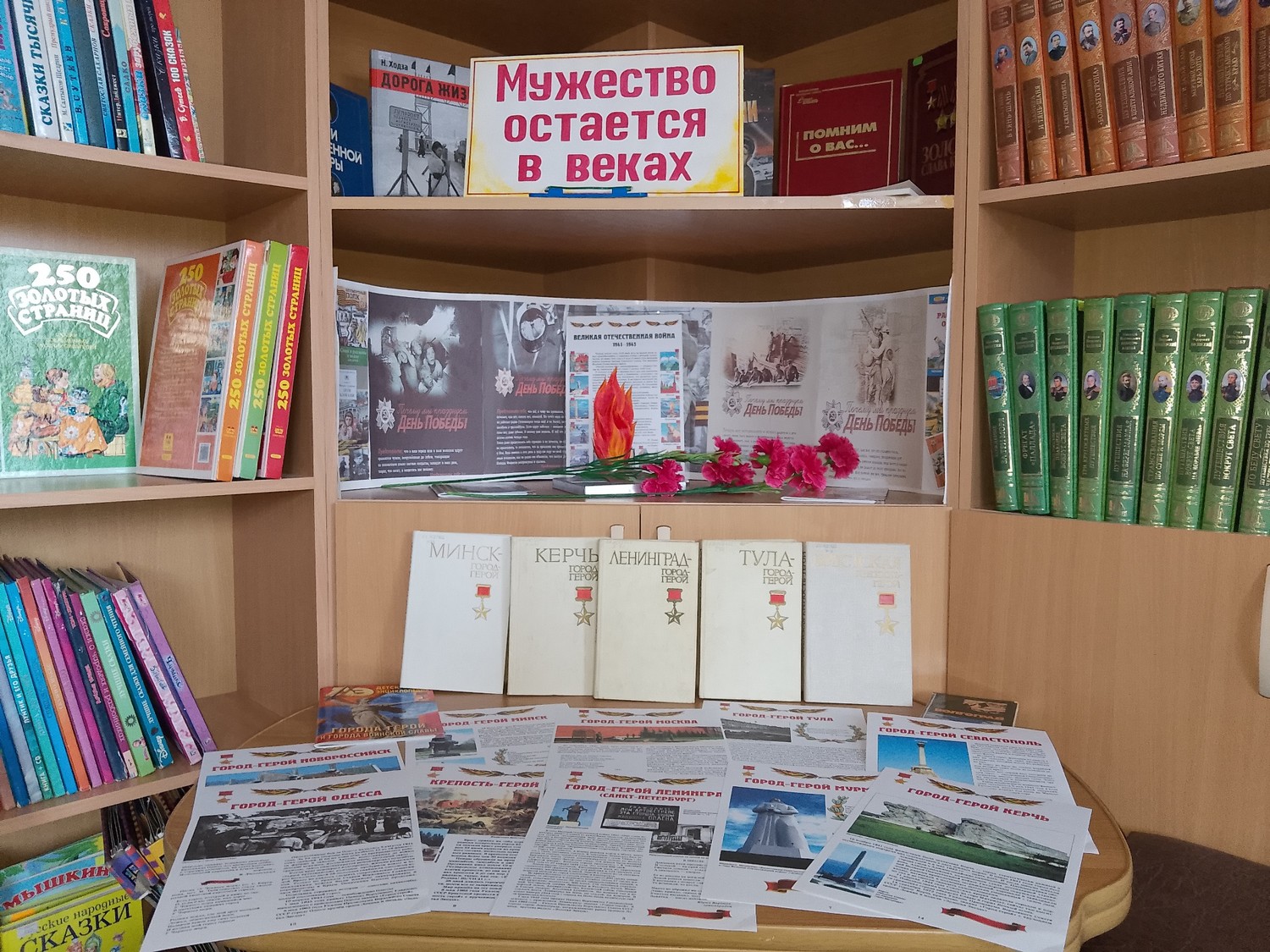 Дополняла рассказ ведущего слайд-презентация с фото и видео хроникой событий Великой Отечественной войны, связанных с этими городами. В ходе мероприятия звучали стихи и песни. Так же учащимся были рекомендованы книги о городах-героях представленные на книжной выставке «Мужество остается в веках».