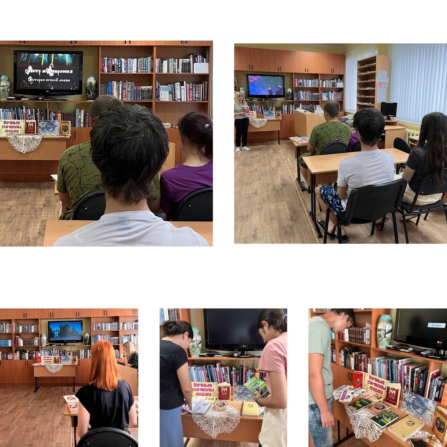 8 июля на библиотечной площадке прошла акция «Вечный символ любви». К мероприятию сотрудниками Центральной районной библиотеки была подготовлена книжная выставка «Любви и счастья теплота», где была представлена книга «Повесть о Петре и Февронии», которая перечитывается каждый год людьми разных возрастов на протяжении 480 лет со дня написания. Акция продолжилась в читальном зале библиотеки, где участники встречи просмотрели фильм «Петр и Феврония. История вечной любви», а после делились своими секретами семейной жизни и просто беседовали на разные темы.