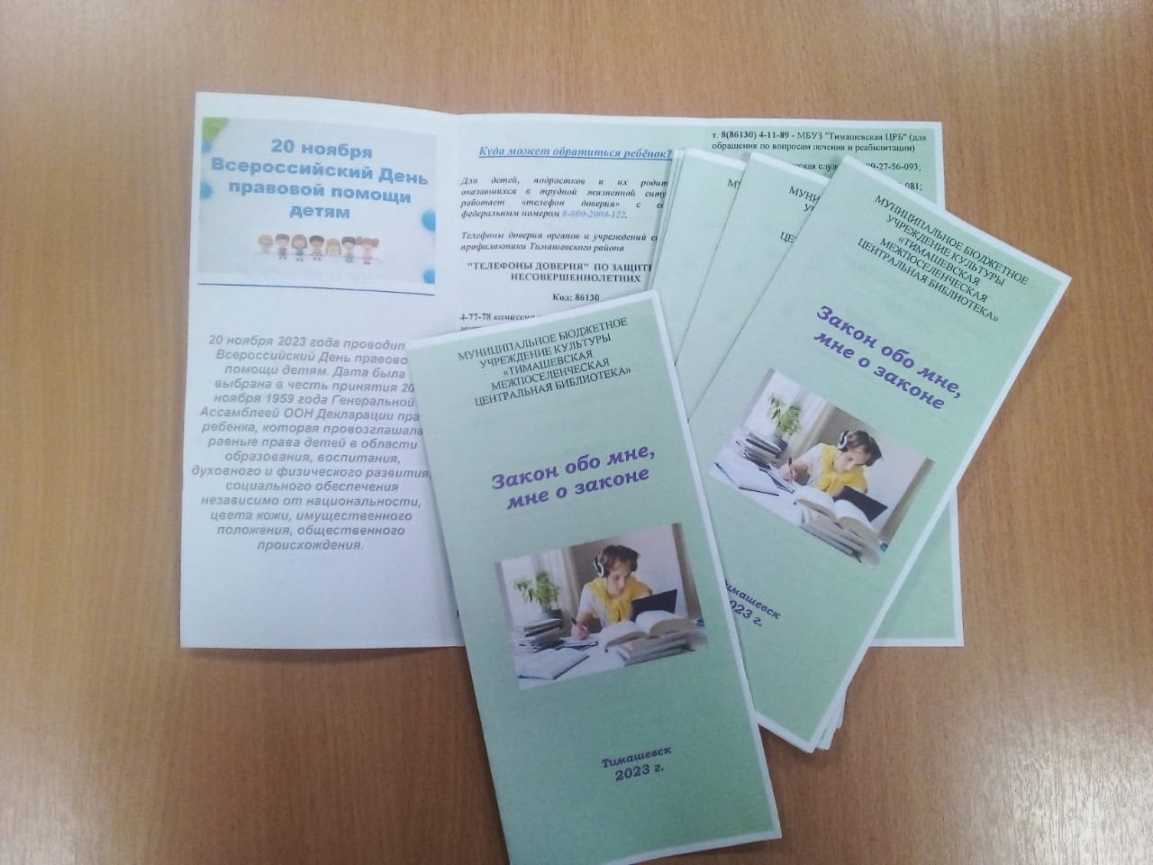 Тимашевская межпоселенческая центральная библиотека провела к этой дате одноимённую акцию, во время проведения которой жители Тимашевска узнали об основных правах ребёнка и способах их защиты, а также получили информационные буклеты. Цель данных буклетов - не только разъяснить юным читателям и их родителям права детей, но и кратко ответить на вопрос, куда может обратиться ребёнок, в том числе в трудной жизненной ситуации: для этого в пособии перечислены контакты «телефонов доверия» по защите прав несовершеннолетних, «телефоны доверия» противодействия незаконному обороту наркотиков и профилактики их немедицинского потребления и другие вопросы, касающиеся различных сторон повседневной жизни детей в современном российском обществе.