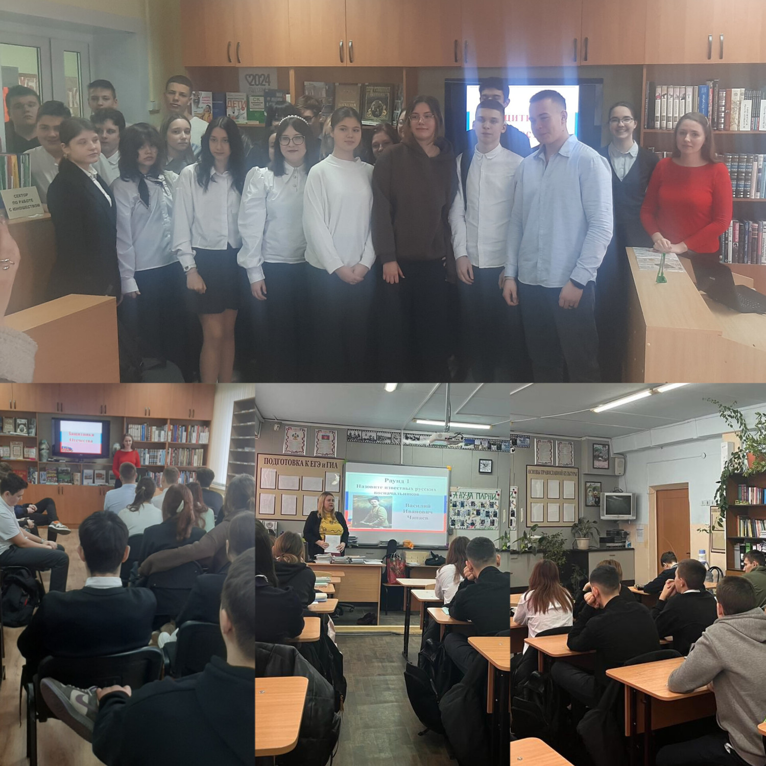 21 февраля, специалисты центральной районной библиотеки, в преддверии праздника провели час молодого гражданина «Защитники Отечества». Мероприятие проходило в читальном зале библиотеки для учащихся 9 класса МБОУ СОШ №1 и на базе МАОУ СОШ № 11 для учащихся 8 класса. Библиотекари рассказали историю праздника в России, говорили о современных военных профессиях, провели викторину на знание разных аспектов Вооруженных сил Российской Федерации.